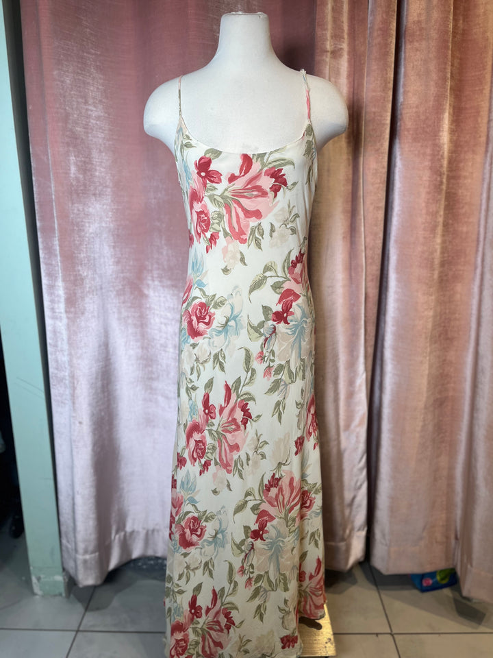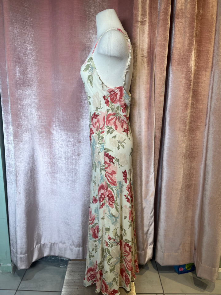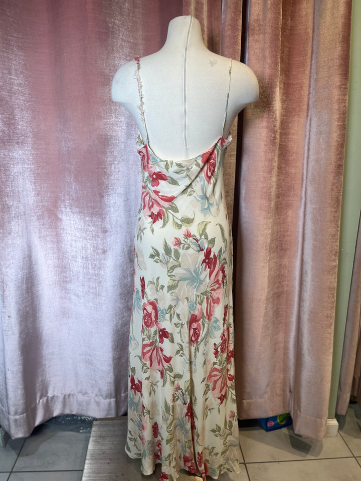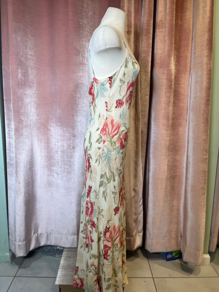 Vintage Y2K kamisato bias cut floral print cowl neck slip maxi party dress