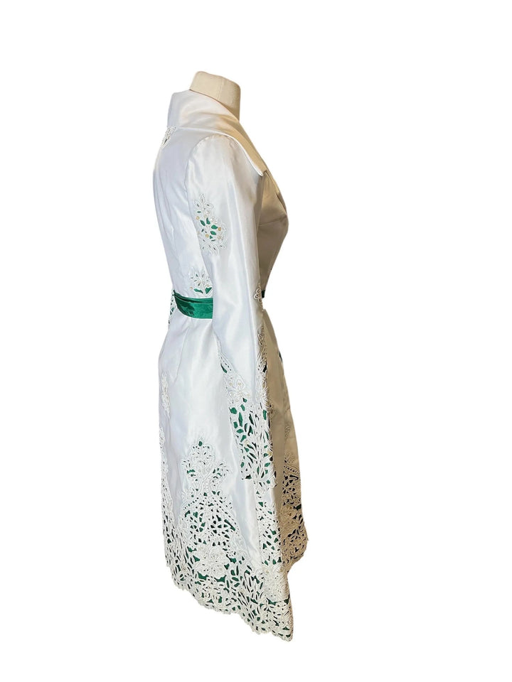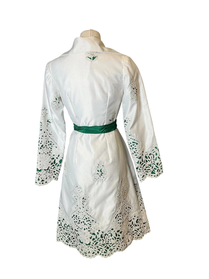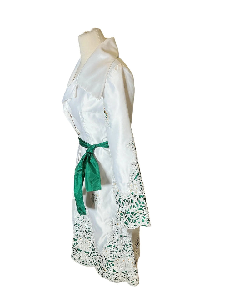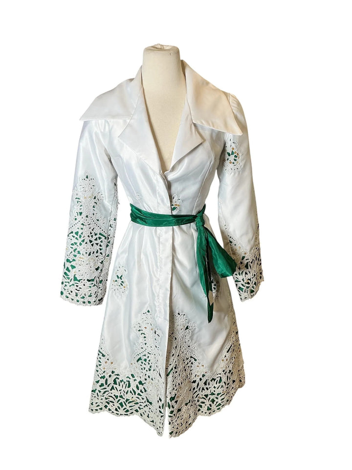 Vintage Y2K embroidery eyelet white duster lightweight coat S