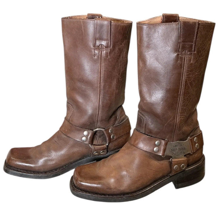 Vintage Y2K Harley Davidson Buckle Rodeo Leather Western Motorcycle Boots