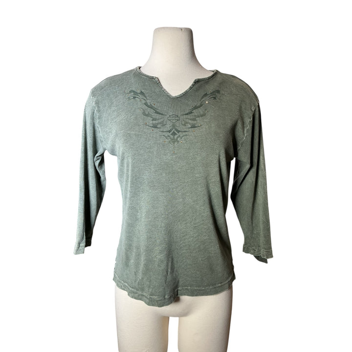 Vintage Y2K Harley Davidson Rhinestone Long Sleeve Tee