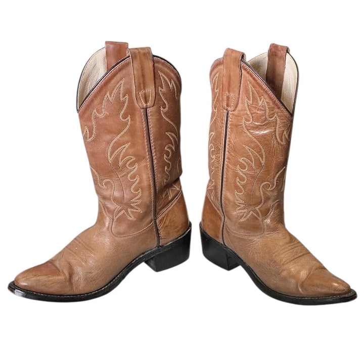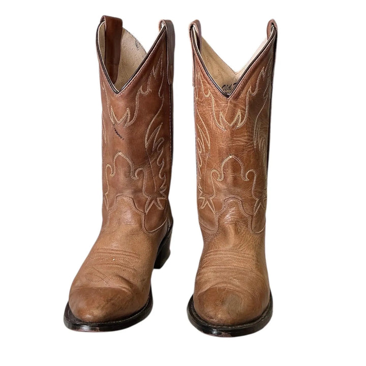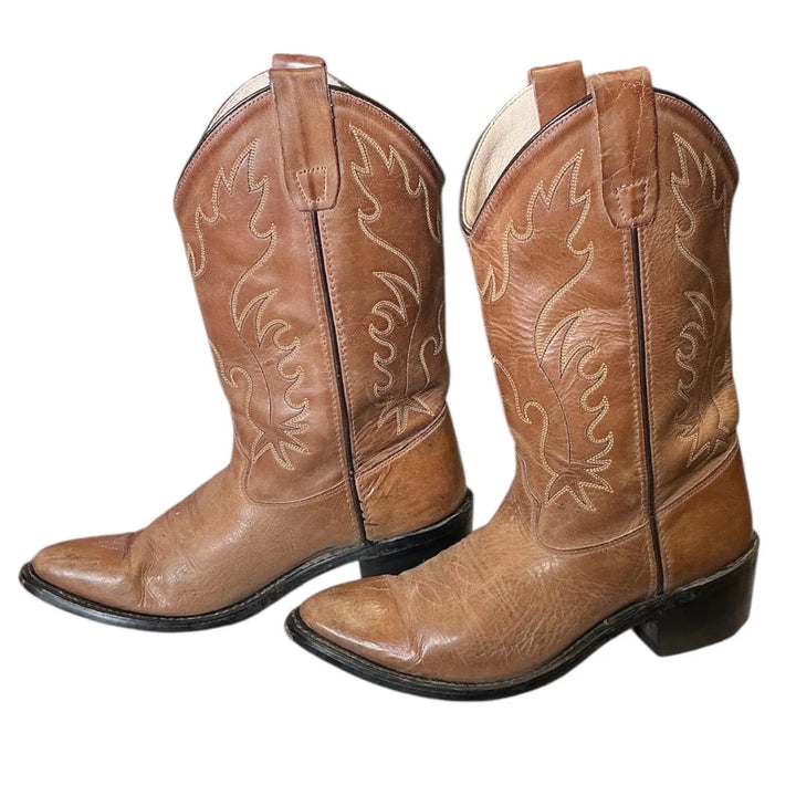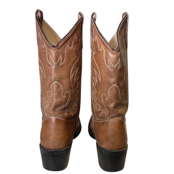 Vintage Y2K Old West Flame Stitch Rodeo Leather Cowgirl Boots