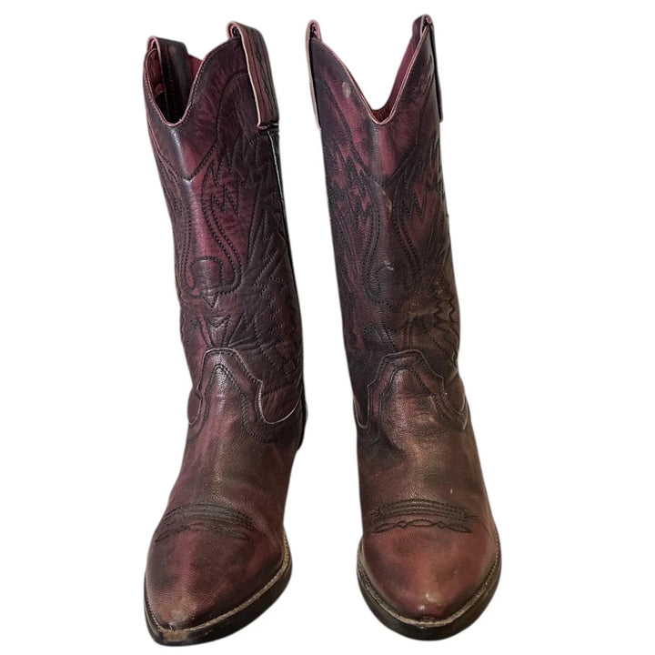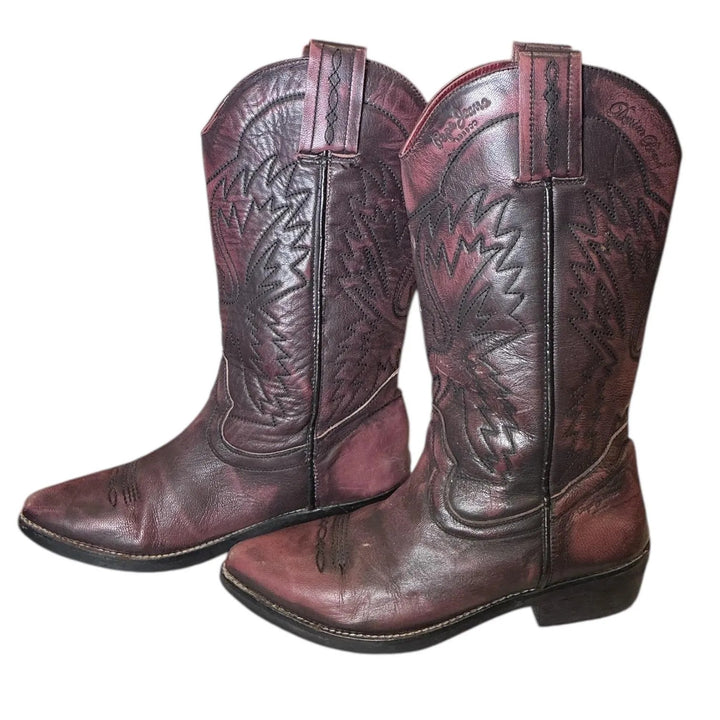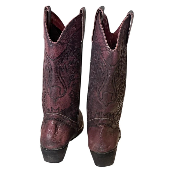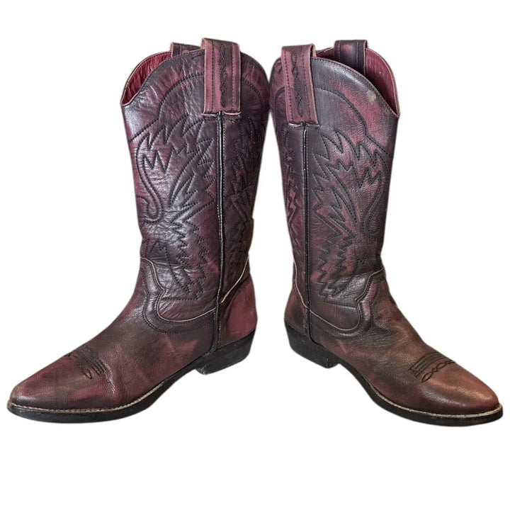 Vintage Y2K Pepe Jeans Burgundy Western Rodeo Leather Cowgirl Boots