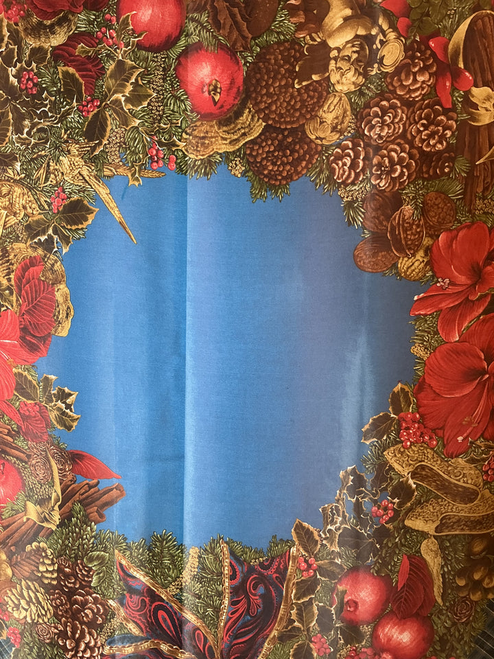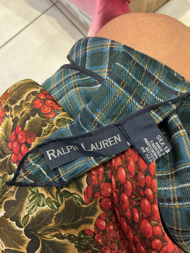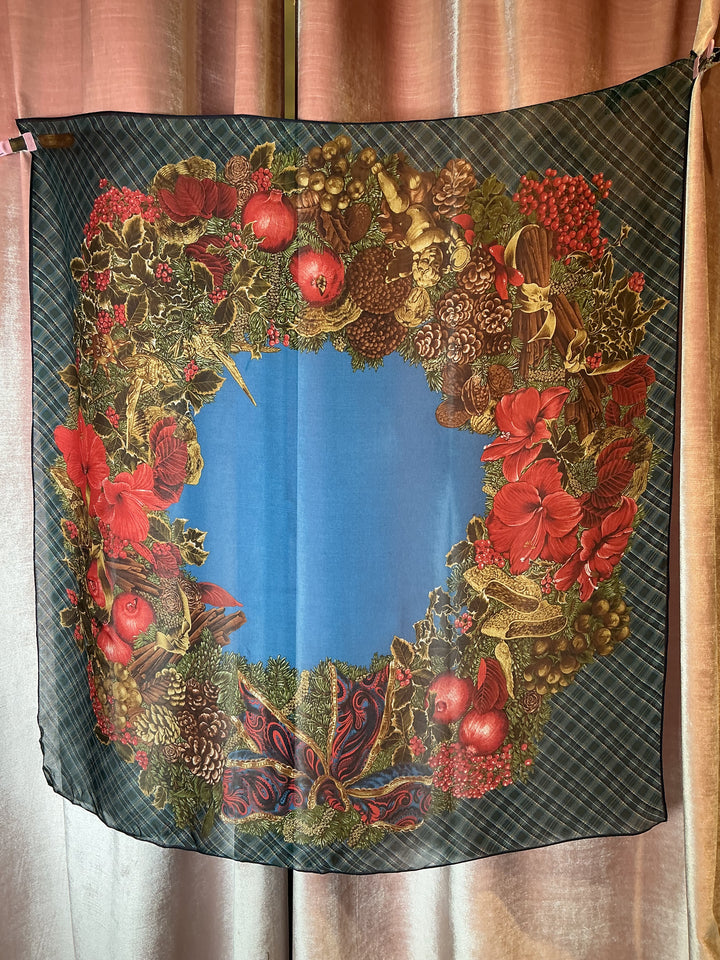 Vintage Y2K Ralph Lauren Christmas Wreath Holiday Poinsettia Pinecone Design scarf