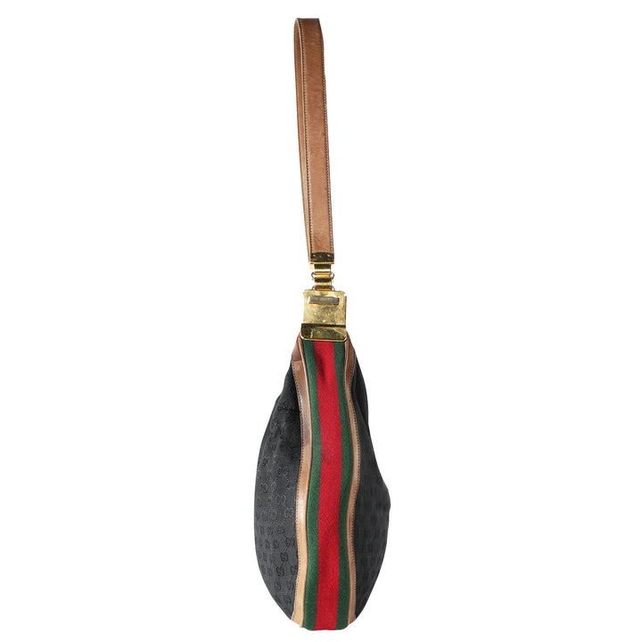 Vtg 70s GUCCI Canvas Monogram Shoulder Hobo Tote Bag