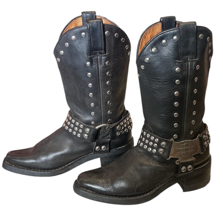 Y2K Harley Davidson Studded BuckleWestern Rodeo Leather Cowboy Cowgirl Boots