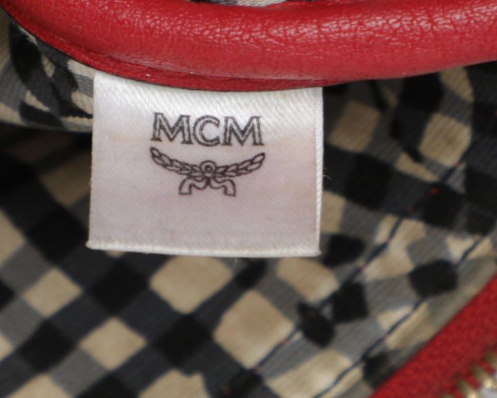 Y2K MCM Visetos Liz Shopper Tote Pouch Leather Monogram Logo Clutch Shoulder Bag