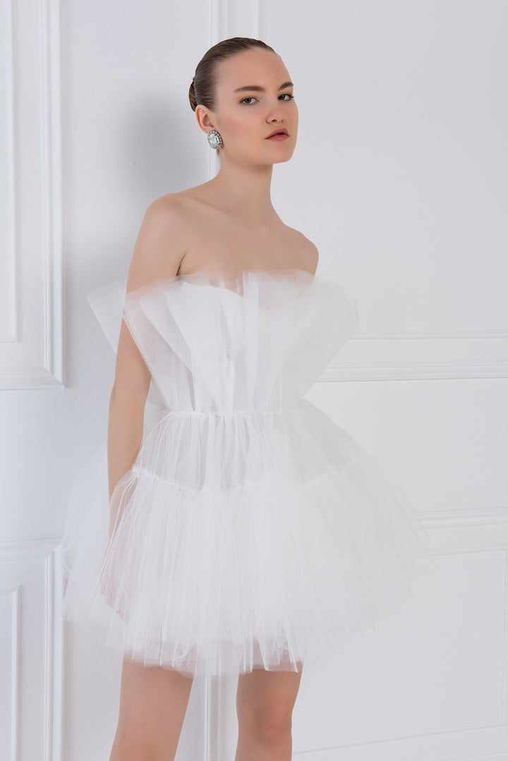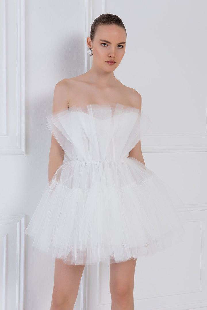 Zoey Layered Pink Tulle Loofa Mini Dress - White